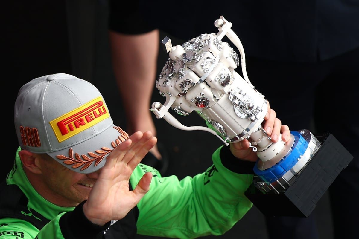 Queste creazioni uniche sono state ispirate dallo storico trofeo del Royal Automobile Club (RAC) e progettate dal designer LEGO Samuel Liltorp Johnson. Ci sono volute oltre 210 ore di lavoro a 7 costruttori del negozio di modellini LEGO Group di Billund, in Danimarca, per realizzarle tutte. Il trofeo del pilota vincitore e quello dei costruttori misurano entrambi oltre 59 cm di altezza, mentre quelli del 2° e 3° classificato sono di dimensioni inferiori, con un'altezza di oltre 43 cm ciascuno, mentre il trofeo originale del RAC è alto 70 cm.