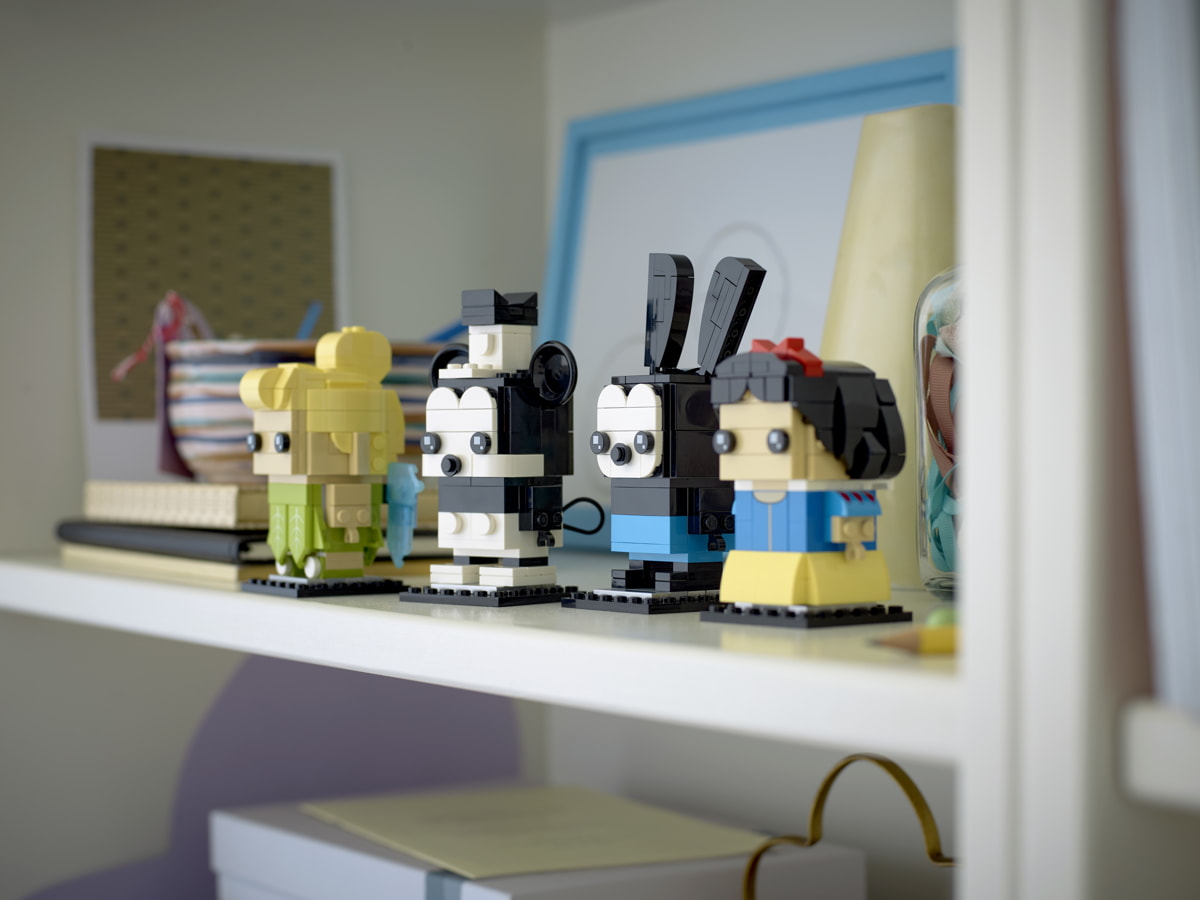 Il set celebrazione dei 100 anni di Disney LEGO® BrickHeadz™ è perfetto per rievocare la magia dei primi personaggi Disney: è composto infatti da Oswald il coniglio fortunato (il primo personaggio creato da Disney), Topolino (il primo personaggio animato di Disney), Biancaneve (la protagonista del primo film Disney) e Trilli (la prima mascotte di Disneyland). I modelli, una volta assemblati, si prestano per essere esposti grazie alla base che si trova all’interno del set. Un gioco perfetto da fare assieme e ricordare i propri momenti Disney preferiti.