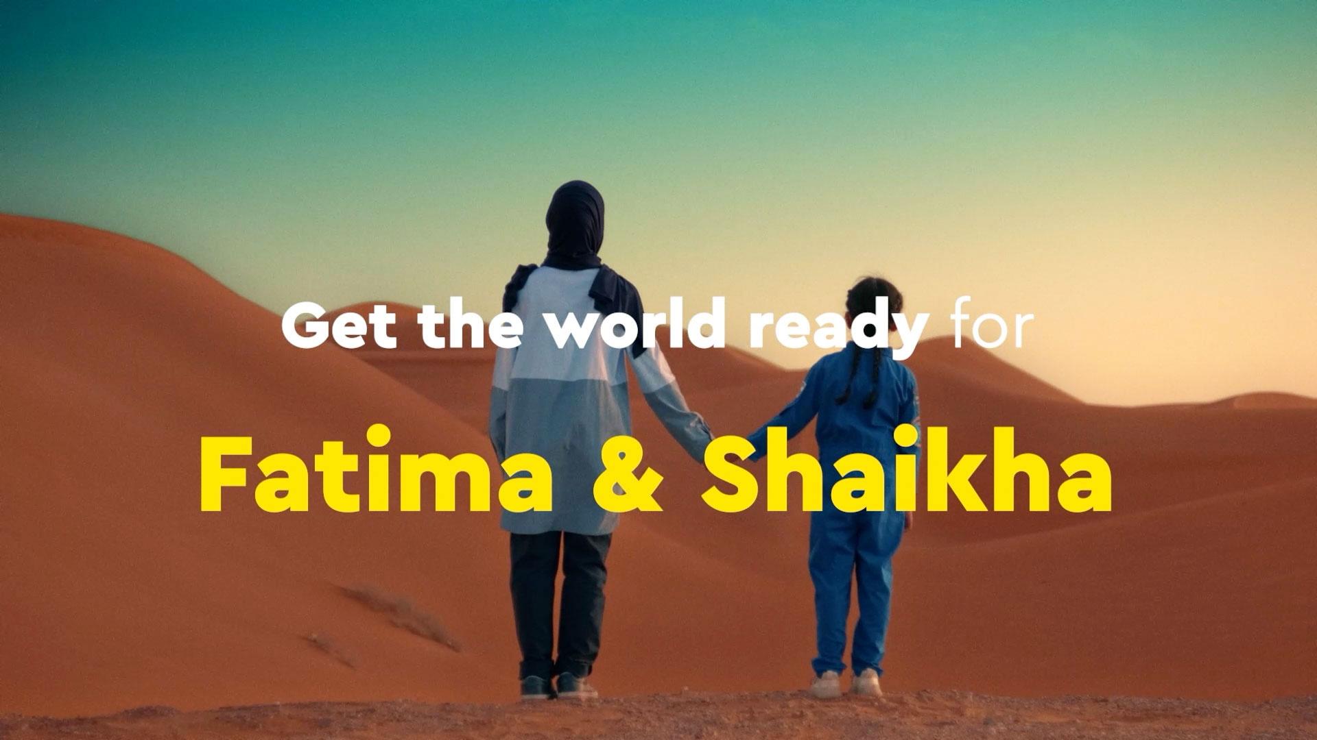 Fatima & Shaika (18 e 8 anni, EAU): Fatima è la più giovane inventrice degli EAU. Sua sorella Shaika ama lo spazio e vuole essere la prima donna sulla Luna.