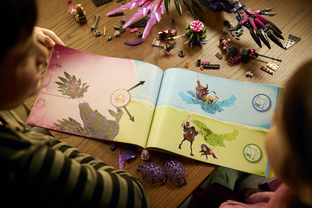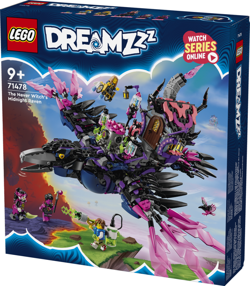 Infine, l'immaginazione può davvero volare con il Corvo di mezzanotte della Mai-Strega. I giovani sognatori si divertiranno a costruire il malvagio corvo della Mai-Strega e quindi a trasformarlo in una capanna-corvo o in una collezione di 3 creature da incubo: una casa ambulante, un ragno calderone e un corvo gigante.