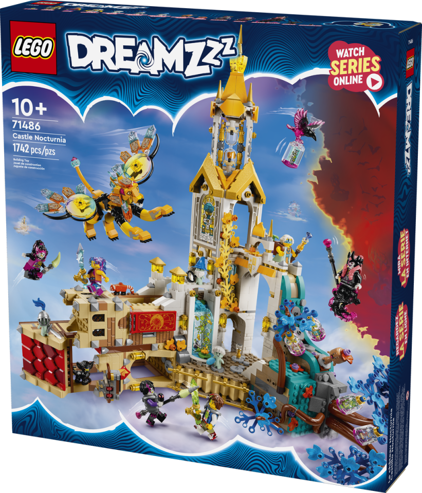 Altri nuovi set includono il Robot Panda di Logan, Le creature da incubo della Mai-Strega, il Battle Mech di Mateo e Z-Blob e l'epico Castello di Nocturnia, in esclusiva per i LEGO Store eLEGO.com/DREAMZzz.