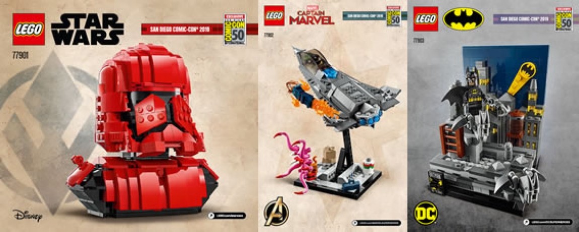 77901 lego starwars sith trooper bust sdcc 201977902 lego captain marvel asis sdcc 201977903 lego batman dark knight gotham sdcc 2019