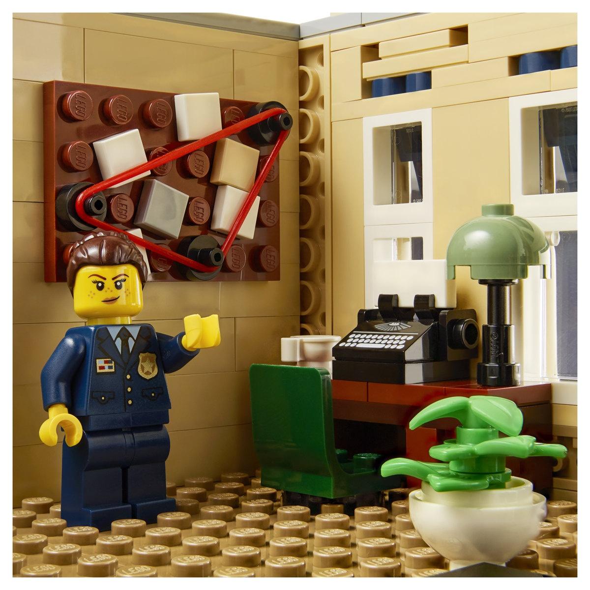 I piani della Stazione di Polizia LEGO sono ricchi di sorprese e meraviglie nascoste per i veri appassionati del crimine. Costruendo il set è evidente che un misterioso ladro di ciambelle è a piede libero. Naturalmente, la stazione di polizia LEGO è completamente attrezzata per affrontare anche il più dolce dei crimini, con un armadietto per le prove, una cella, una sala interrogatori e una bacheca con linee rosse che collegano tutti gli indizi.