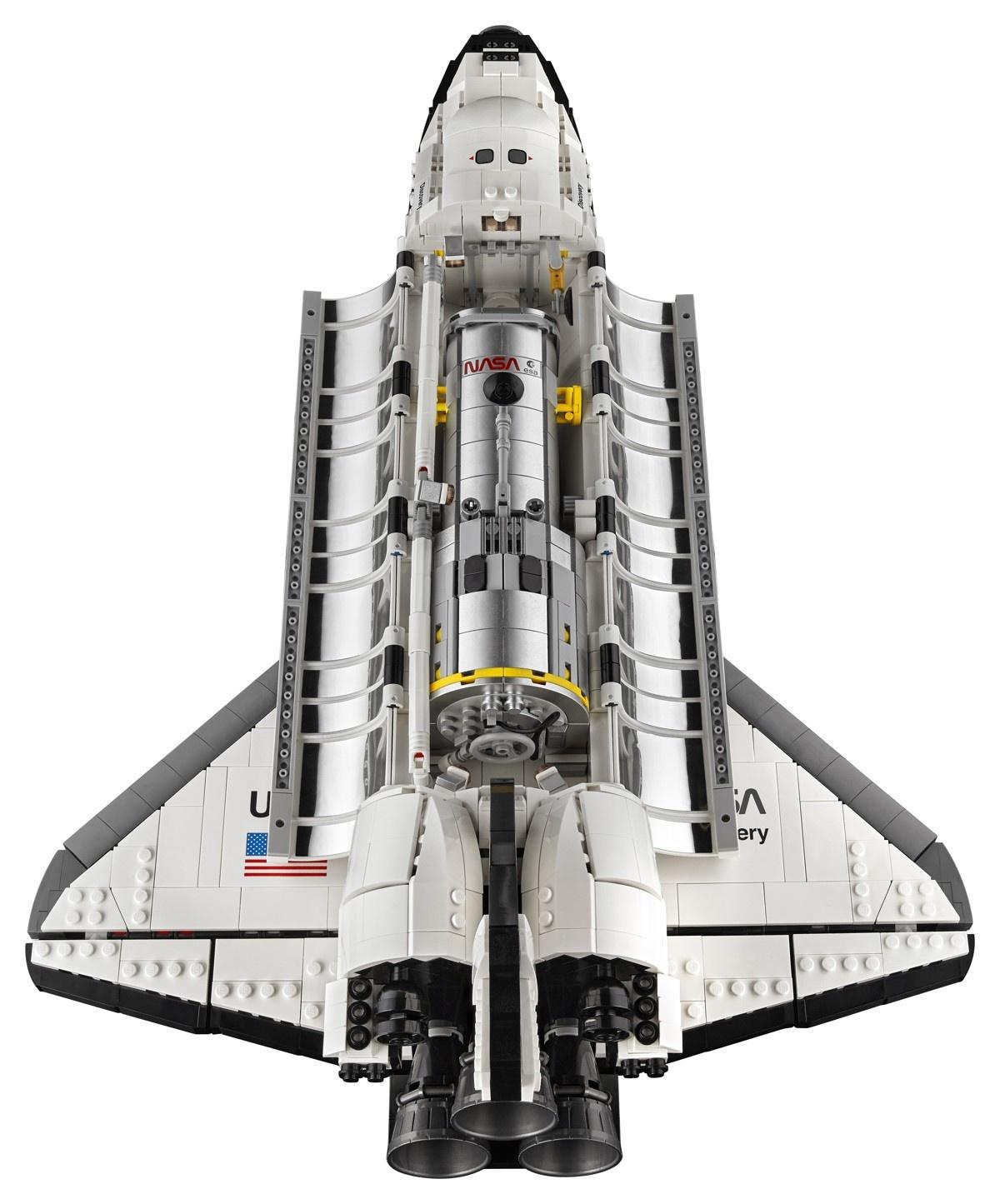 Il LEGO® NASA Space Shuttle Discovery è composto da 2.354 pezzi ed è incredibilmente dettagliato nel rispecchiare fedelmente la sua controparte a grandezza naturale, completo di carrello di atterraggio funzionante e porte della baia di carico che si aprono una dopo l’altra. Le porte dispongono anche di adesivi riflettenti ad imitare i radiatori di raffreddamento che si trovano sul vero orbiter dello shuttle.