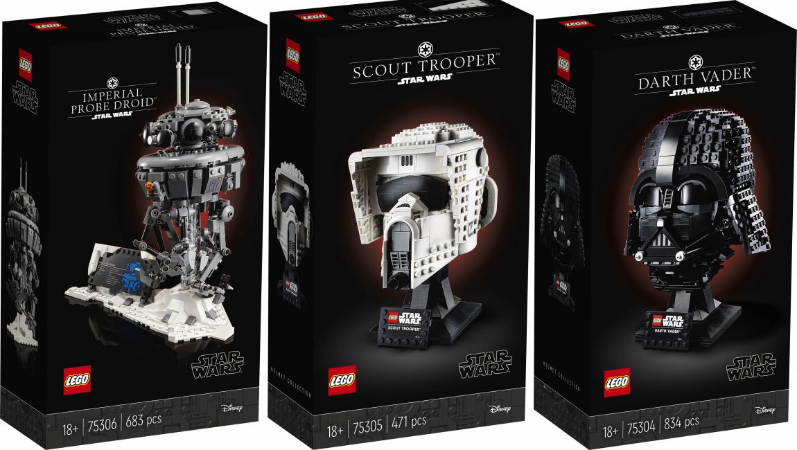 I nuovi set presenteranno due incredibili aggiunte alla collezione di caschi LEGO Star Wars, rivelata per la prima volta lo scorso anno: un busto ispirato a Darth Vader™ e uno con le sembianze del fedele Scout Trooper™. Inoltre, il nuovo straordinario modello in onore dell’imponente Imperial Probe Droid™ completa il trio.