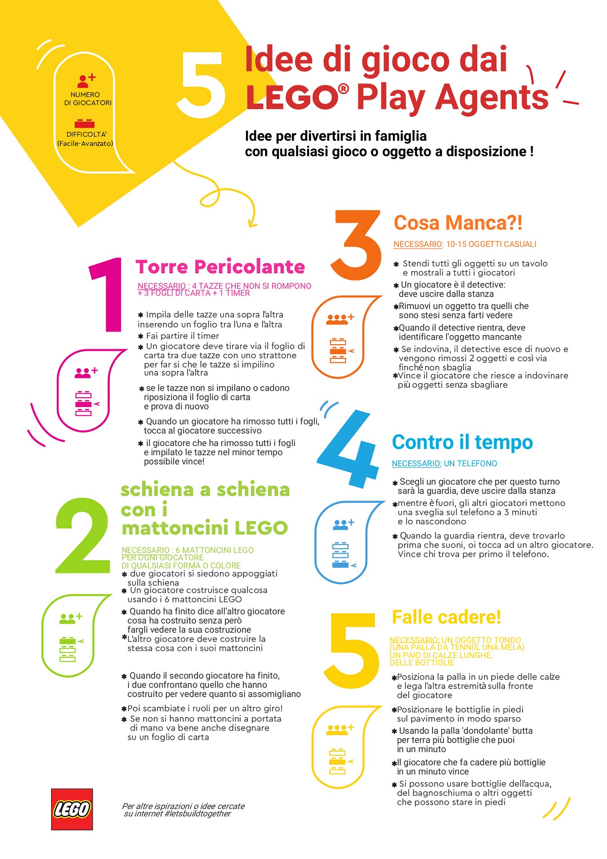 mentre in coda alla pagina potrete trovare una serie di piccoli giochi e idee per divertirsi in casa con quello che abbiamo a disposizione, direttamente dallo staff LEGO Play Agents