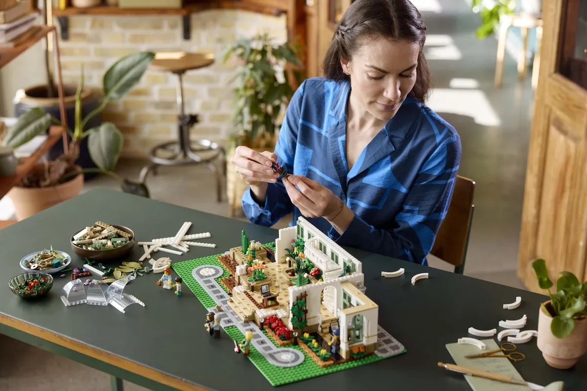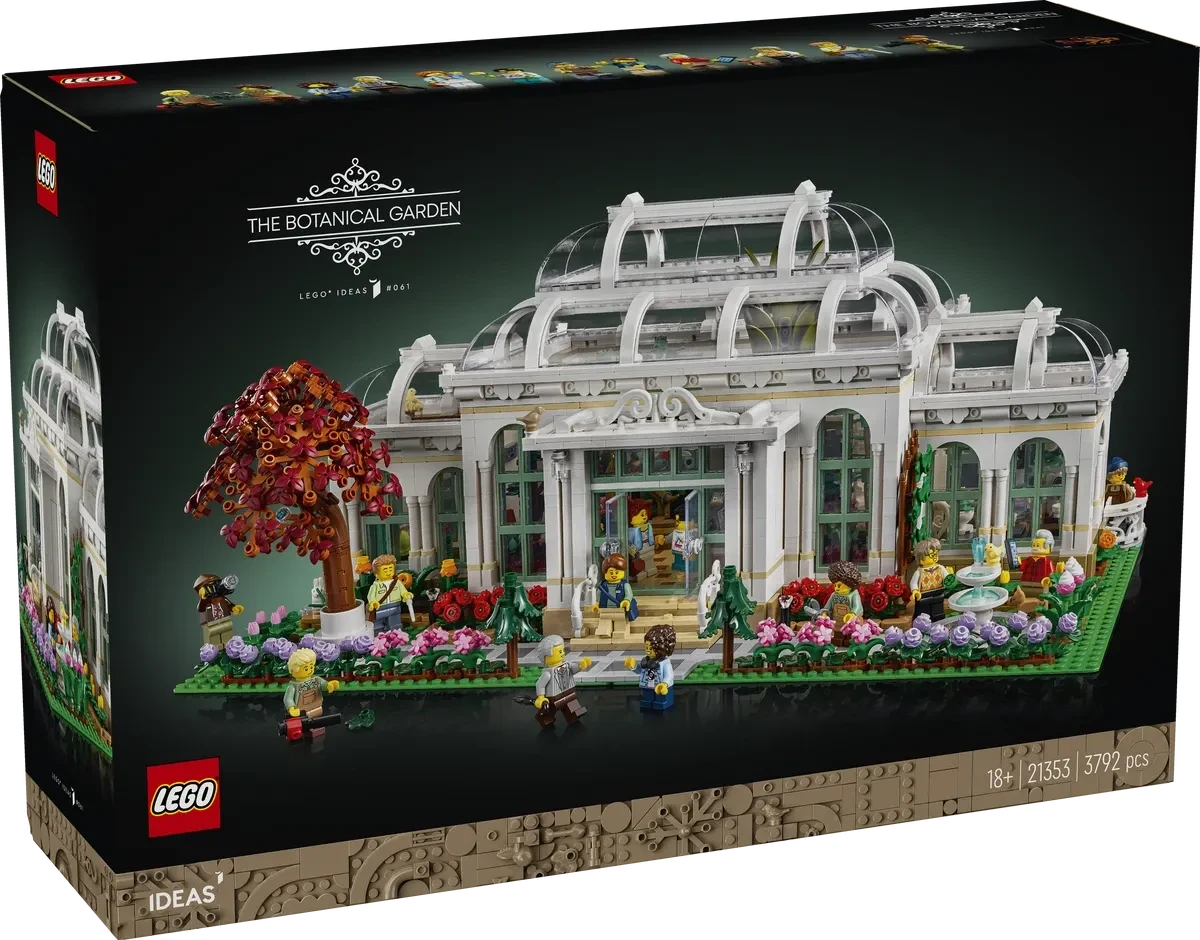 Questo set da 3.792 pezzi permette di realizzare un giardino botanico in stile vittoriano, con tre atrii, ognuno ricco di dettagli, e oltre 35 specie di piante. L'atrio principale presenta una scala a chiocciola che conduce a una terrazza panoramica, offrendo una vista mozzafiato su due alberi esotici. I due atrii più piccoli ospitano un giardino con bellissimi cactus e un accogliente caffè dove rilassarsi. All'esterno, i giardini sono adornati con peonie colorate e altre piante vivaci, creando una scena pittoresca perfetta per far diventare il set un vero pezzo da esposizione.