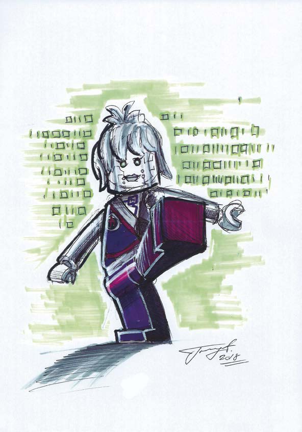 Sul disegno si vede un ninja dell'acqua, anche se alla fine il ninja dell’acqua non è entrato a far parte della squadra NINJAGO fino al 2015, quando Nya è diventato il maestro dell'acqua. Sullo schizzo si legge la parola "Spinjago", una prima idea di nome, che si è poi evoluta in "Spinjitzu" - una combinazione delle parole "spin" e "ninjitsu".