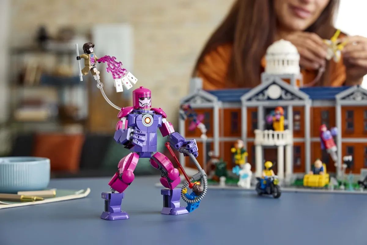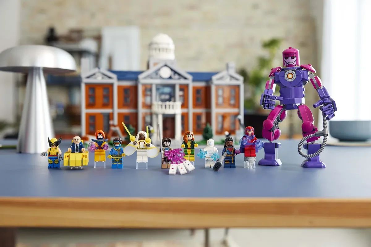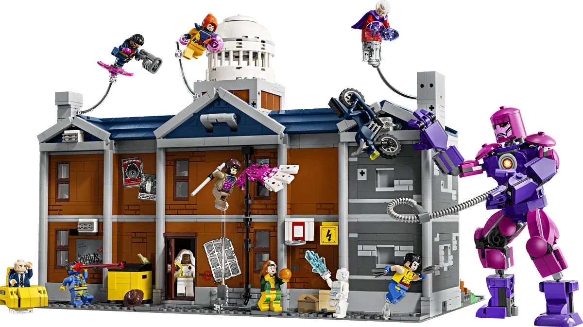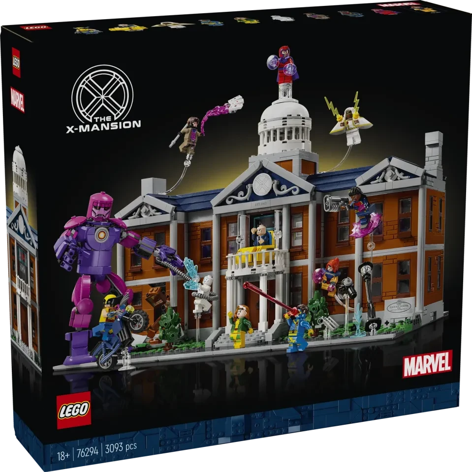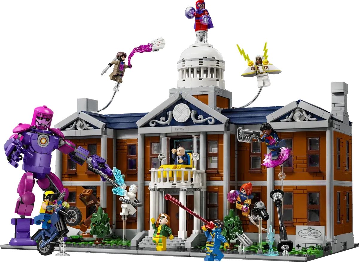 Il set costruibile LEGO Marvel X-Men: The X-Mansion include una Sentinella costruibile e 10 familiari minifigure, cinque delle quali saranno presentate per la prima volta in un set LEGO! Le nuove minifigure LEGO includono il Professor X, una nuova variante di Jean Grey, Gambit, Iceman e Bishop. Con i suoi accessori realistici, il set presenta anche elementi della X-Mansion, tra cui Cerebro, oggetti della Danger Room commutabili, una cupola esplosiva (struttura a forma di cupola), una motocicletta per Wolverine, oltre a cenni grafici all'iconico franchise degli X-Men.