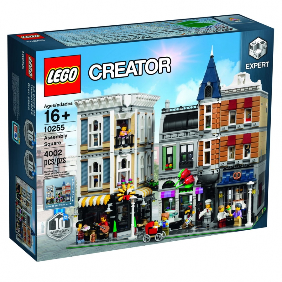 La Piazza Centrale è stata ideata per celebrare 10 anni di Modulari LEGO® con una ricchezza di dettagli e sorprese intricate e nascoste. Il facile accesso agli interni altamente dettagliati ci mostra: al piano terra una pasticceria, un fiorista e un café; al primo piano un negozio di musica, uno studio fotografico e l’ufficio di un dentista; all’ultimo piano una sala prove di danza e un appartamento con accesso alla terrazza sul tetto con un barbecue. L’esterno dell’edificio presenta un dettagliato marciapiede con i tavolini esterni del café, una fontana, lampioni, delle insegne dei negozi, una torre e un tetto decorato e una facciata con bellissime porte e finestre decorate!.
