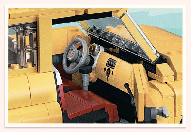 - Le istruzioni di montaggio incluse ricreano l'aspetto del materiale promozionale originale, con curiosità sulla vera auto e sulla storia dell'azienda Fiat e un'intervista con il progettista LEGO® che ha ideato questo modello di auto d'epoca.
