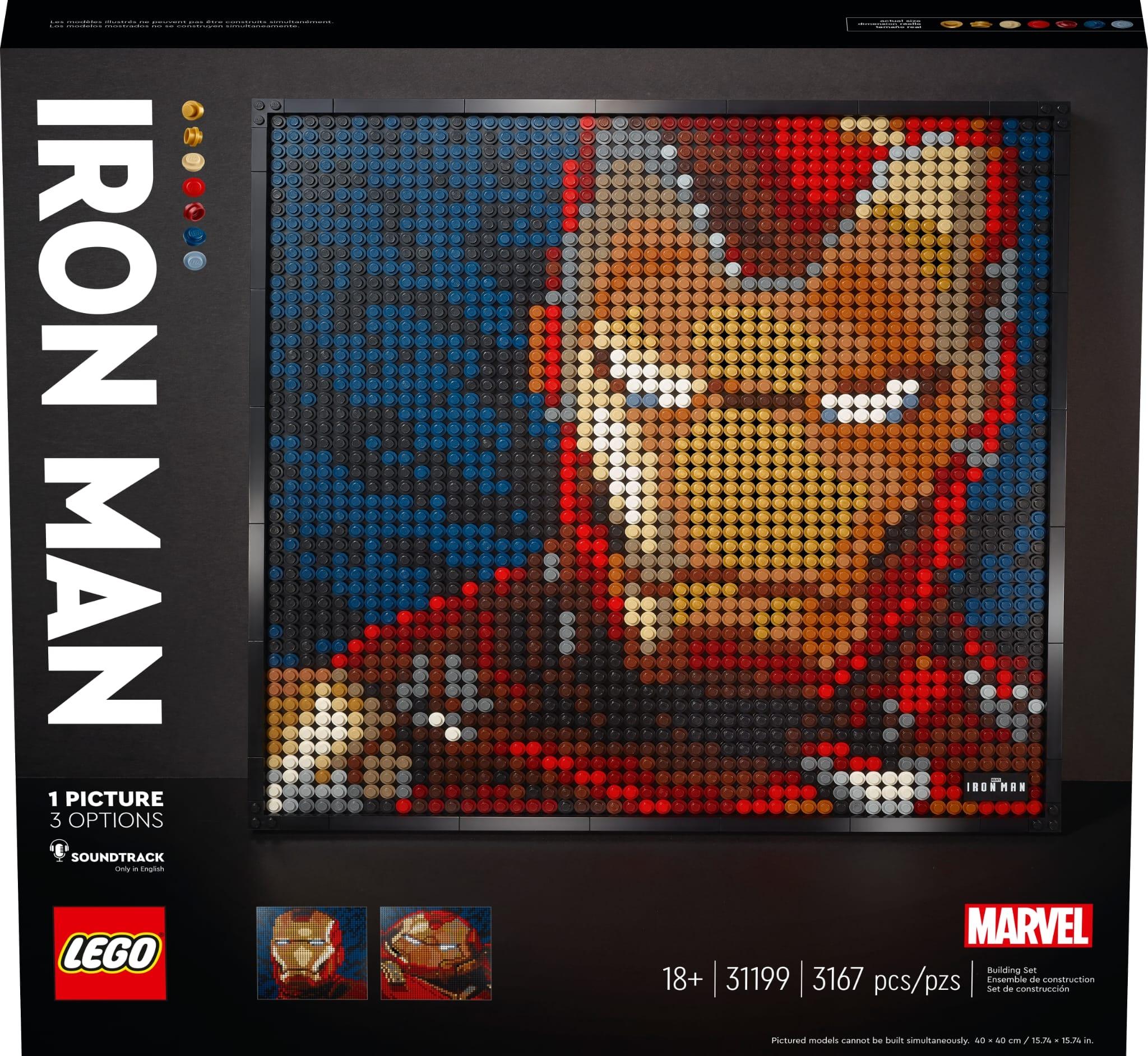- Costruisci questo set LEGO® Art Marvel Studios Iron Man (31199), con un modello con 3 opzioni di costruzione. Esponete la vostra versione preferita dell'armatura di Iron Man sulla parete o sullo scaffale dopo aver trascorso del tempo a realizzarla.