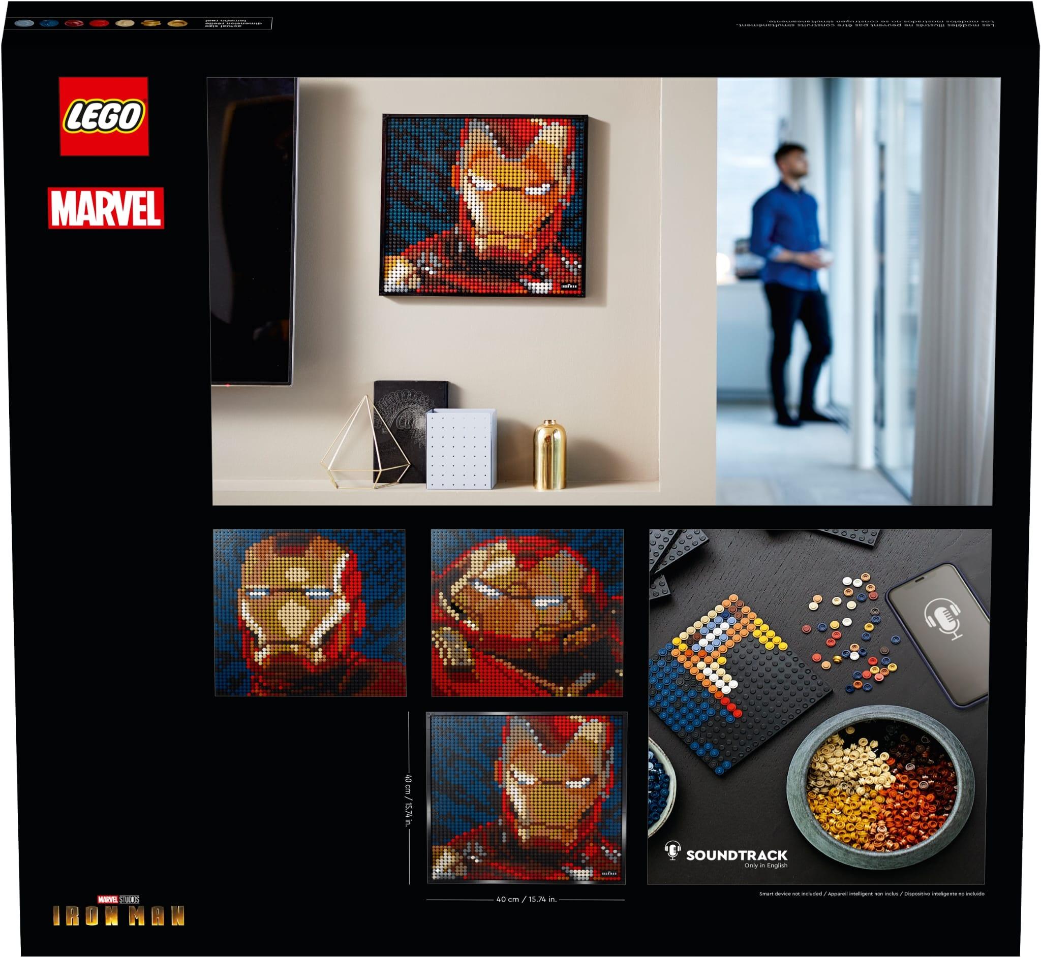 - Questo set LEGO® Art 3in1 misura oltre 40 cm quadrati. Esponetelo su una parete o su uno scaffale, dove i suoi dettagli lo aiutano a distinguersi. È un grande regalo per voi o per un altro creativo costruttore che è appassionato di Super Heroes o Iron Man.