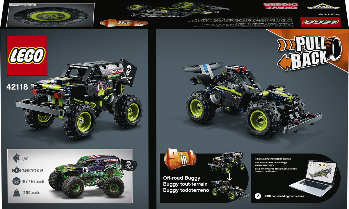 Cerchi un giocattolo o un regalo divertente per i bambini che amano i truck Monster Jam®? Il truck pull-back Monster Jam Grave Digger® LEGO® Technic 42118 è ricco di funzionalità che i bambini adoreranno. I tocchi autentici includono la grafica Grave Digger con dettagli di fantasma e fuoco, oltre a enormi pneumatici, una bandiera mobile e fari rossi.