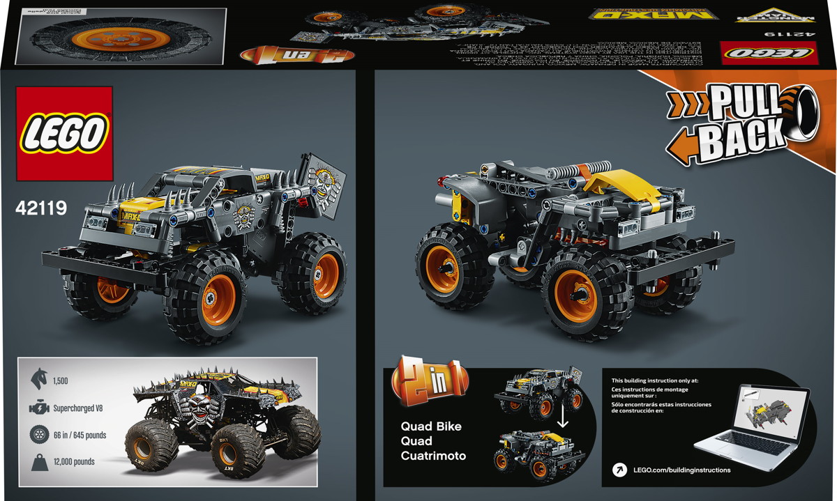 Ispira i bambini che amano Monster Jam® a costruire il loro monster truck con questo kit di costruzione Monster Jam Max-D® LEGO® Technic 42119. Con la sua azione pull-back, i bambini potranno ricreare le audaci acrobazie dall’arena di Monster Jam in pochissimo tempo. Il truck giocattolo 2-in-1 è ricco di potenti funzionalità, proprio come l'originale. Dai un'occhiata alla grafica e ai colori autentici, ai chiodi e alla bandiera mobile. Questo fantastico truck Monster Jam giocattolo offre due sfide di costruzione in una. Dopo aver costruito il modello Max-D, i bambini possono ricostruirlo in un quad per avventure ancora più ad alta velocità. Scarica l’app LEGO Building Instructions gratuita per usare le Instructions PLUS. Questa guida interattiva semplifica la costruzione con gli strumenti di zoom e rotazione.