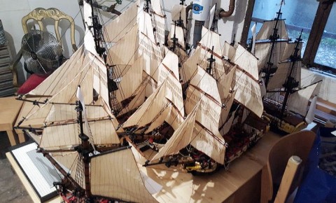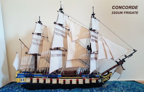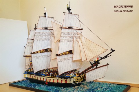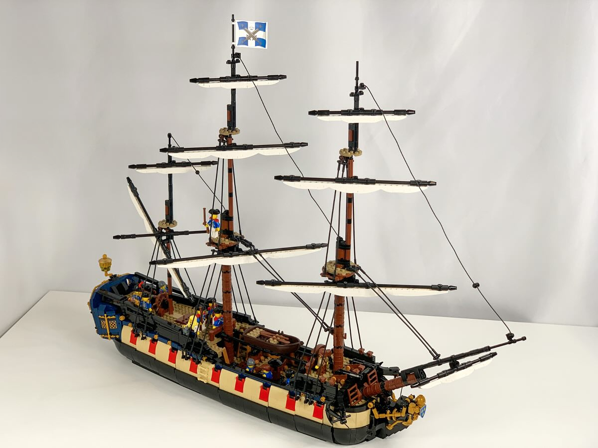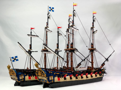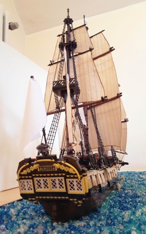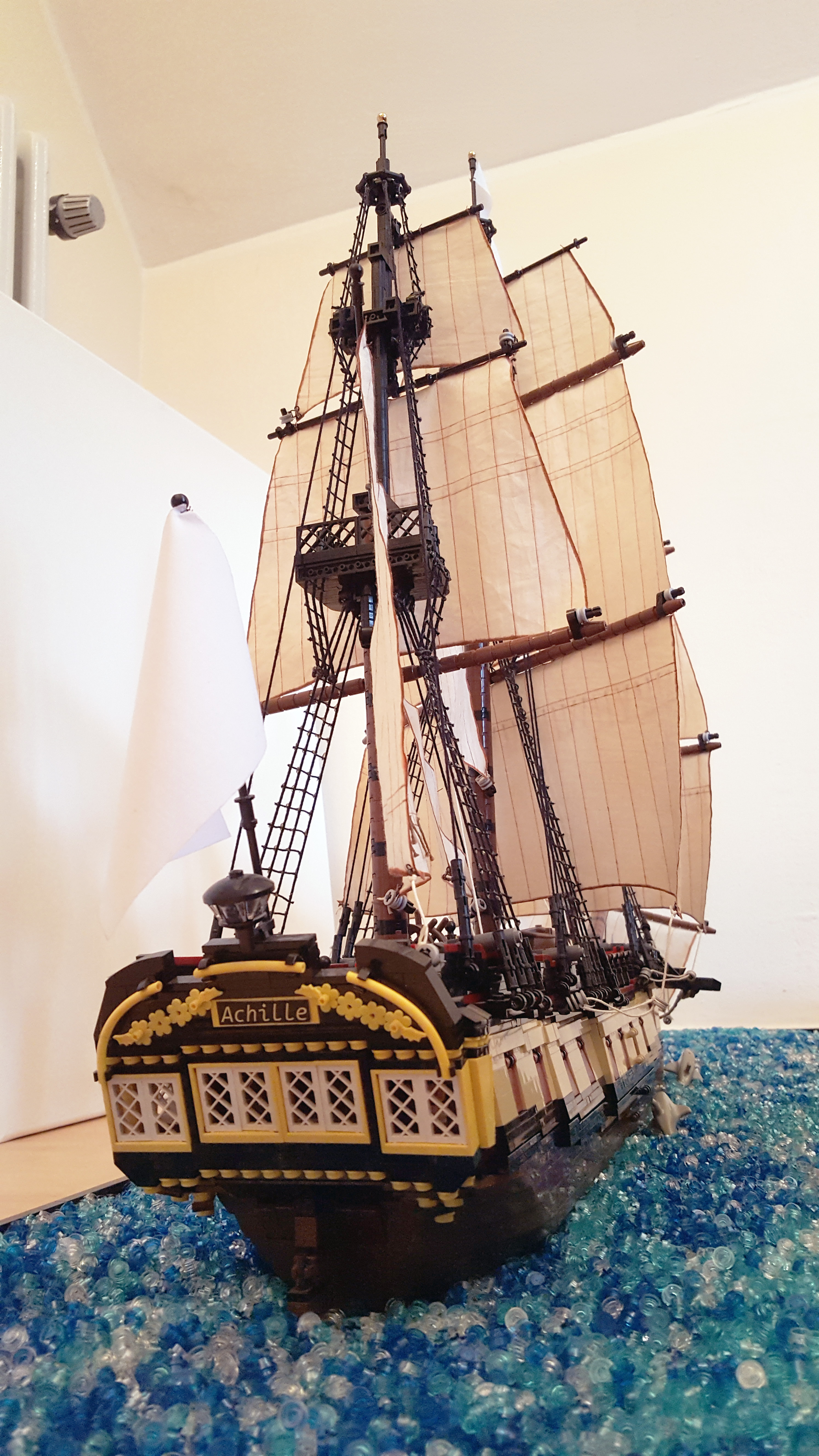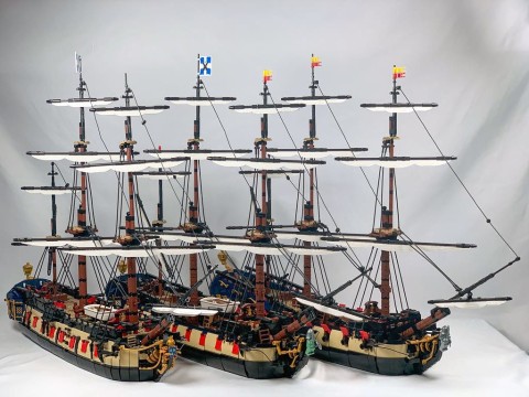 Il mio contributo al BDP6, con la Fortuna. Ho anche costruito un'intera flotta di velieri (8 imbarcazioni in totale, incluse 4 fregate) nel 2012. Prima di allora, avevo tentato di costruire una singola nave di linea più grande in scala minifigure (sarebbe stata lunga 1,7 m), ma non l'ho mai terminata e ho quindi costruito la flotta di imbarcazioni più piccole
