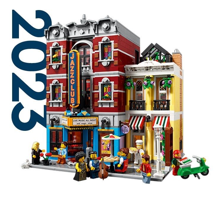 Salutate il LEGO Jazz Club, il primo locale musicale della collezione, rilasciato nel 2022. Il set offre un'esperienza di costruzione coinvolgente, con stanze multiple su tre piani, un palco, il camerino della band e persino una pizzeria.