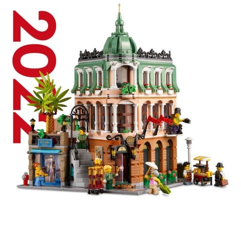 Nel 2022 abbiamo realizzato il LEGO Boutique Hotel per celebrare i quindici anni degli edifici modulari LEGO. Ma questo non è un hotel qualsiasi. È uno dei primi modulari a presentare una geometria triangolare... e contiene anche Easter Egg nascoste che onorano le costruzioni modulari LEGO del passato.
