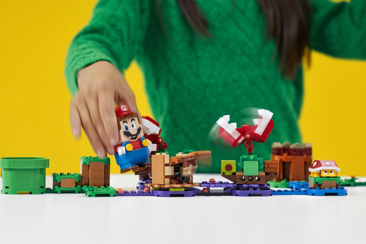 LEGO Super Mario è nato all'inizio di quest'anno grazie a una partnership esclusiva tra LEGO Group e Nintendo. L'avventura ha avuto inizio con un primo indispensabile set: Avventure di Mario - Starter Pack, che include il personaggio LEGO Mario, in grado di raccogliere monete in livelli interattivi e creato con i mattoncini LEGO. Ogni Set di espansione e personaggio da collezione è progettato per essere utilizzato con lo Starter Pack, che comprende sette Action Brick che permettono di interagire con la figura di LEGO Mario, che ha display LCD al posto degli occhi e della bocca e sulla pancia, per mostrare istantaneamente le reazioni al movimento, al colore e alle azioni dei mattoncini. Partendo dai biomi esistenti di acqua (blu), fuoco (rosso), sabbia (giallo) ed erba (verde), questa seconda ondata di prodotti introduce Soda Jungle, un bioma completamente nuovo caratterizzato dal colore viola, che rappresenta il veleno, che permette ai bambini di sperimentare le diverse reazioni di LEGO Mario e nuovi modi di giocare.