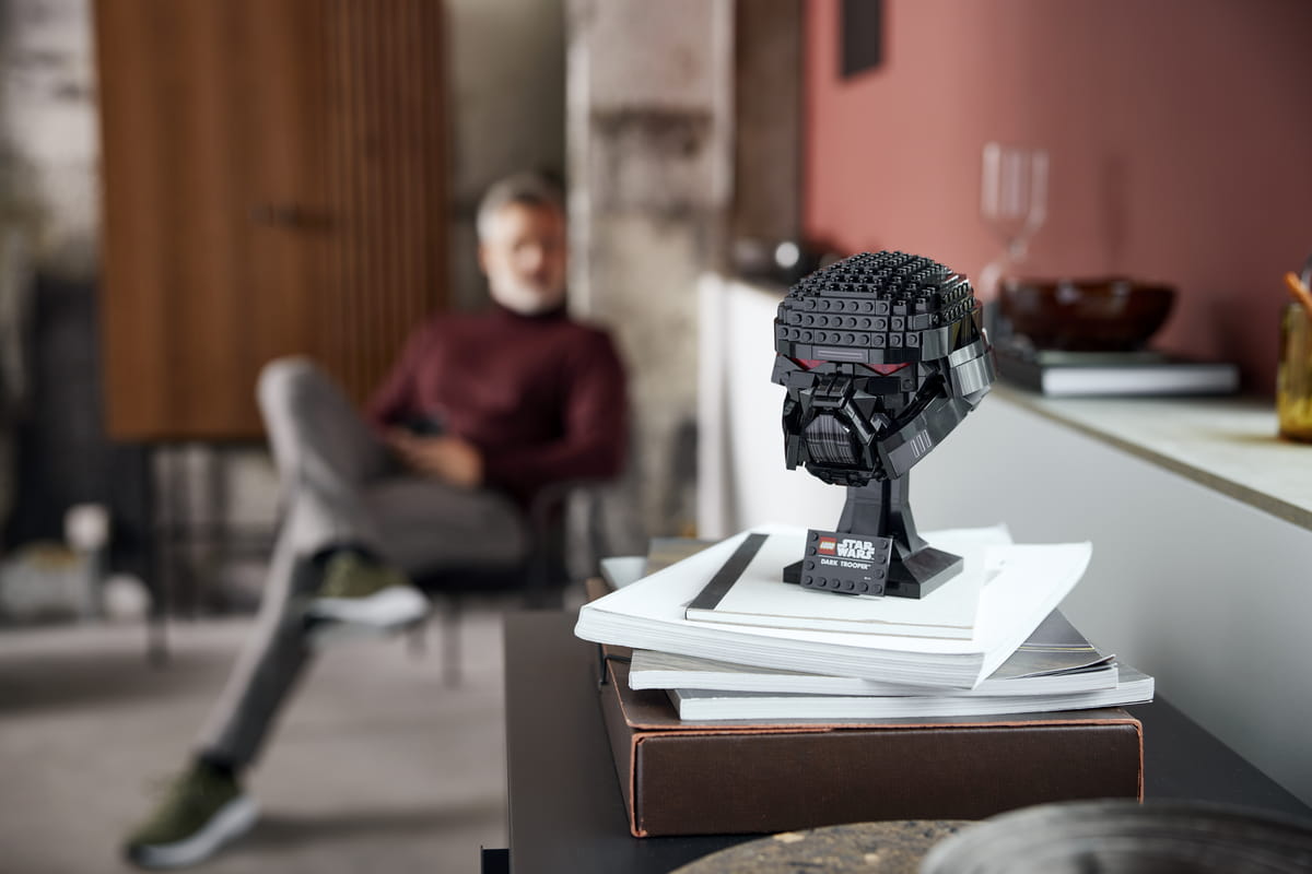 Coloro che sono affascinati dal lato oscuro, possono dimostrare la loro fedeltà al Remnant Imperiale con il Casco del Dark Trooper™: il modello ricrea i contorni dell'elmo in stile LEGO e utilizza una combinazione di elementi rossi traslucidi e mattoncini bianchi per ricreare gli occhi rossi brillanti del letale soldato.