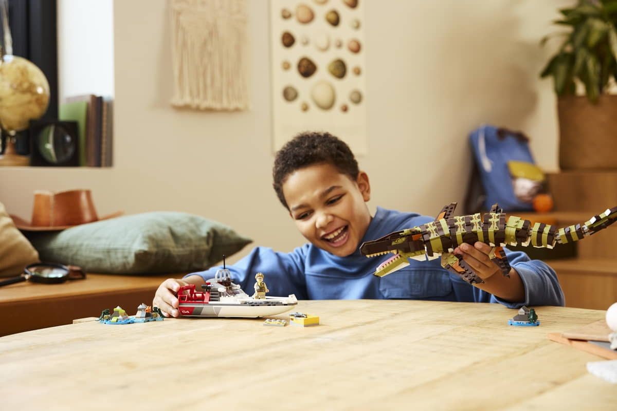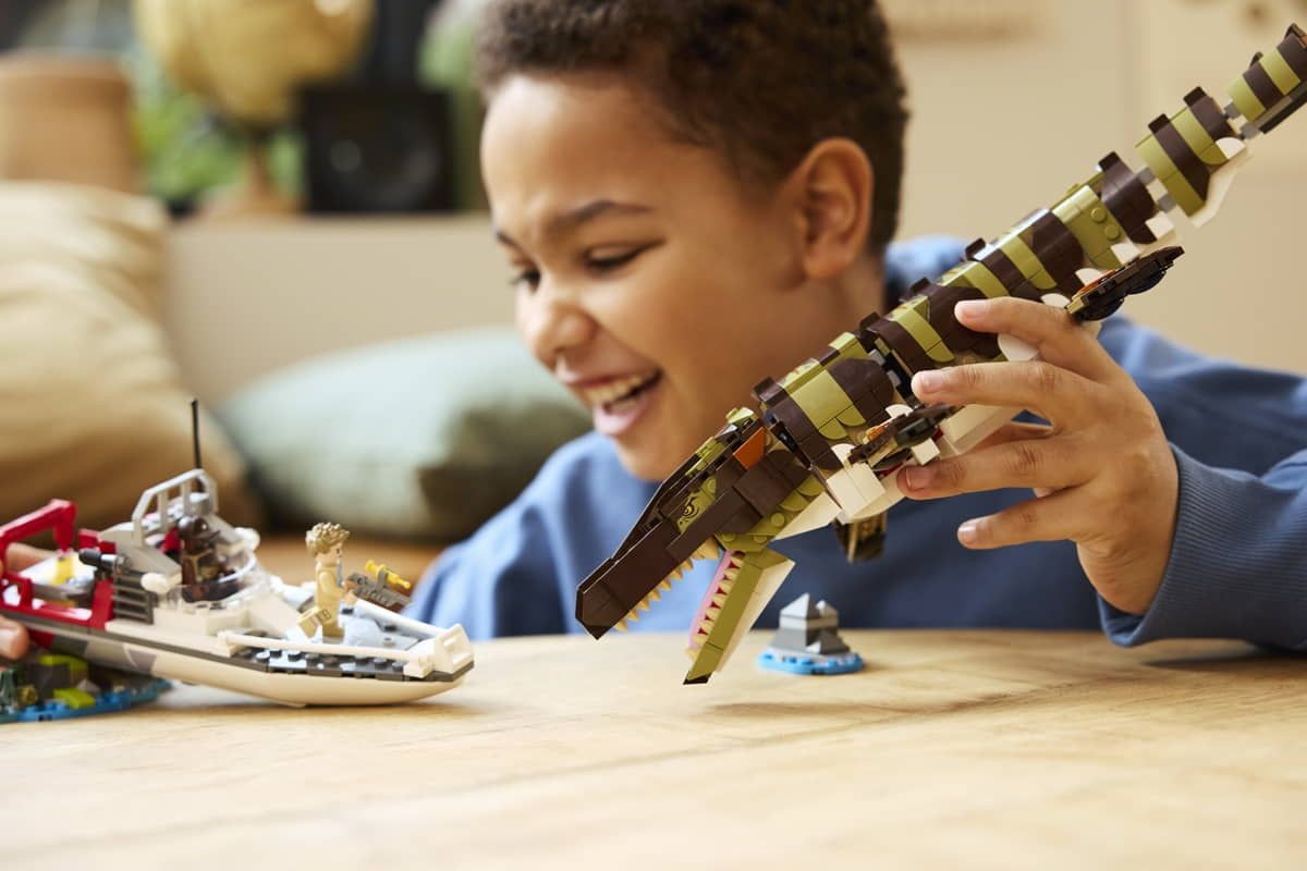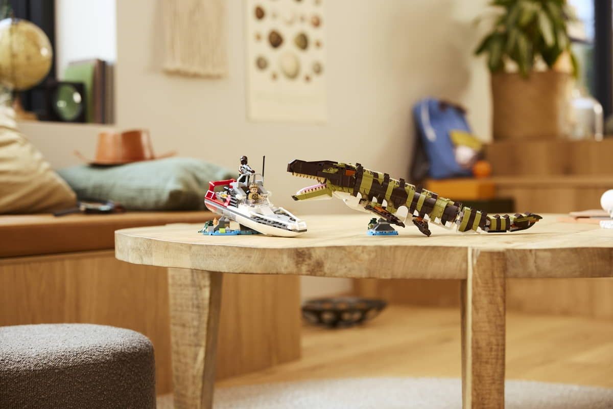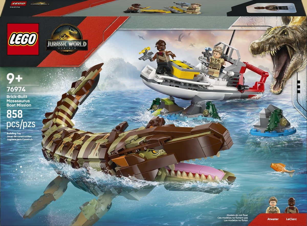 - LEGO Jurassic World Rebirth Brick-Built Mosasaurus Boat Mission (76974) offre infinite possibilità di gioco basate sull'azione: i costruttori dai 9 anni in su possono ricreare l'iconica scena della barca del Mosasauro del film.