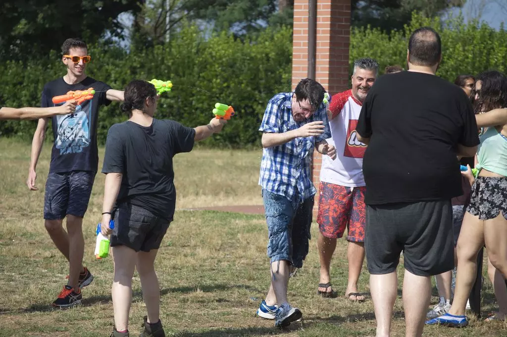 Da segnalare un fatto curioso: man mano che aumentava il numero di persone aumentavano pure i propositi “battaglieri” delle stesse, e sono cominciati i primi sguardi furtivi verso pistole ad acqua, secchi e gavettoni in attesa del momento giusto per dare il via ad una guerra senza esclusione di colpi!! Poco dopo sono state aperte le danze e nessuno si è potuto salvare, come si può notare dalle foto!!...