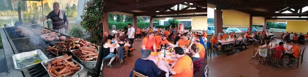 Alle ore 20 è iniziata la cena: pasta al pomodoro o al pesto e mega grigliata di carne. Pollo, rosticciana, salsicce, wurstel e manzo hanno fatto gioire i palati di tutti i presenti!