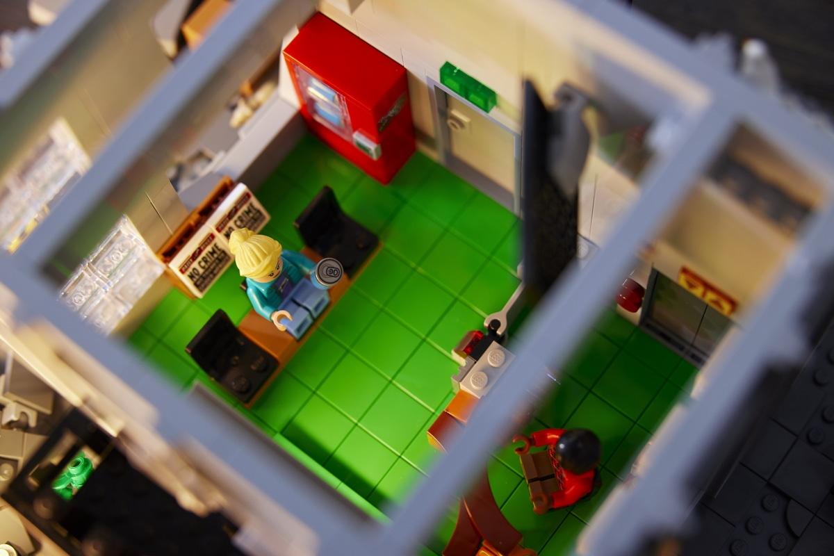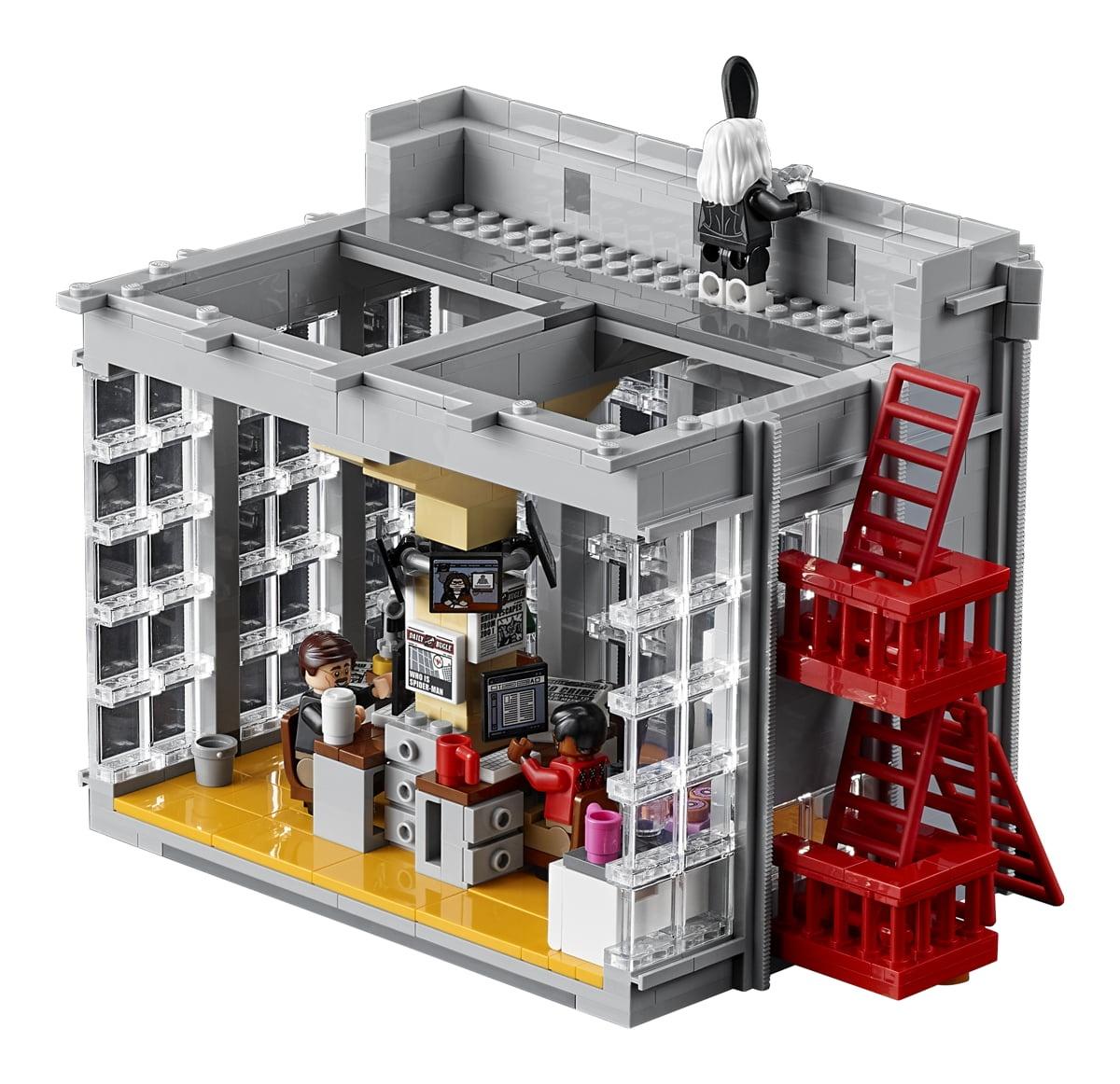 Nell’edificio sono presenti diverse ambientazioni famose, tra cui l’ingresso al piano terra, che può essere distrutto per far sembrare che sia avvenuta un’esplosione, e la redazione al primo piano, completa dei tipici mobili da ufficio, scrivanie e computer, ma anche donuts e altre prelibatezze necessarie!