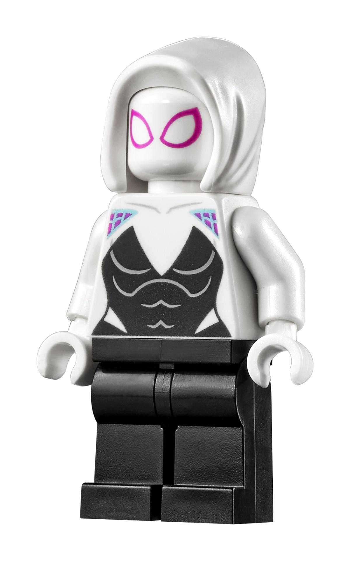 - La lista completa dei personaggi presenti in minifigure sono: Fire Star, Blade, Doctor Octopus, Spider-Man, J. Jonah Jameson, Betty brant, Venom, Miles Morales, Spider-Ham, Green Goblin, Gwen Stacy, Carnage, Punisher, Peter Parker, Spider-Gwen, Black Cat, Robbie Robertson, Ben Urich, Mysterio, Daredevil, Sandman, Zia May, il giornalaio, l’autista del taxi di New York e il receptionist