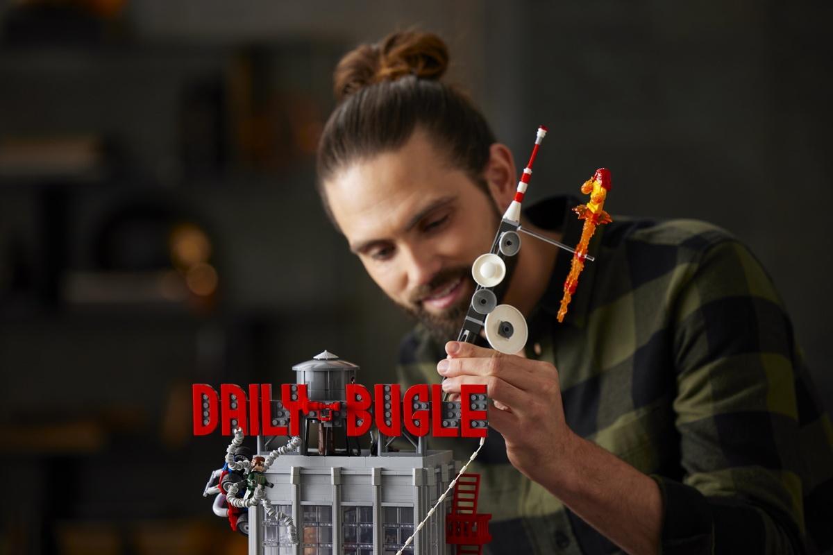 Mark John Stafford, LEGO® Set Designer, ha commentato “Avevo sette anni quando mi è stato regalato il mio primo fumetto di Spider-Man e ho sempre avuto l’idea di creare un modello LEGO® del Daily Bugle e avere Spidey ed i suoi fantastici amici in conflitto con i suoi vari nemici. Uno dei miei elementi preferiti è il Green Goblin che volando entra all’interno dell’edificio attraverso la finestra. Riuscire a progettare un momento di azione congelata come questo in un set LEGO® è sempre stato un sogno e finalmente sono riuscito a realizzarlo!”