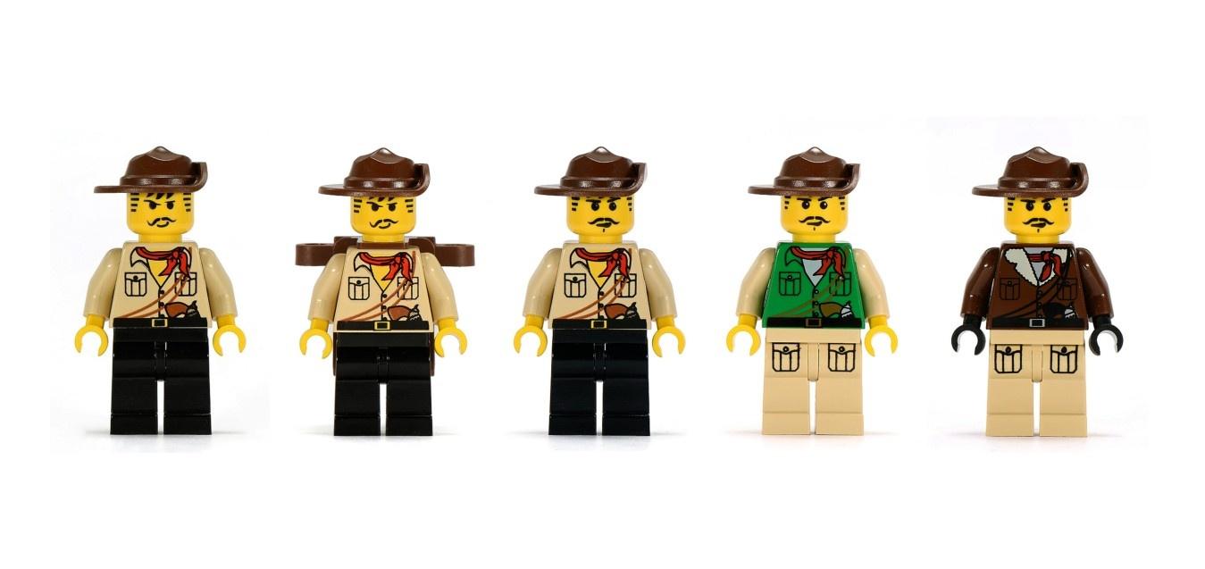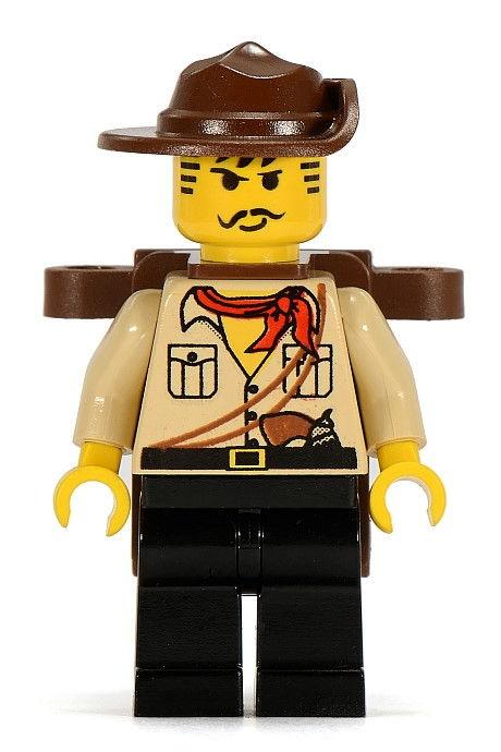 Camicia tan sbottonata, revolver in vista e foulard rosso sono il suo marchio di riconoscimento, una minifigure carismatica accompagnata nelle sue ricerche dal colto Dr. Kilroy e dalla bella fotografa Pippin Reed.