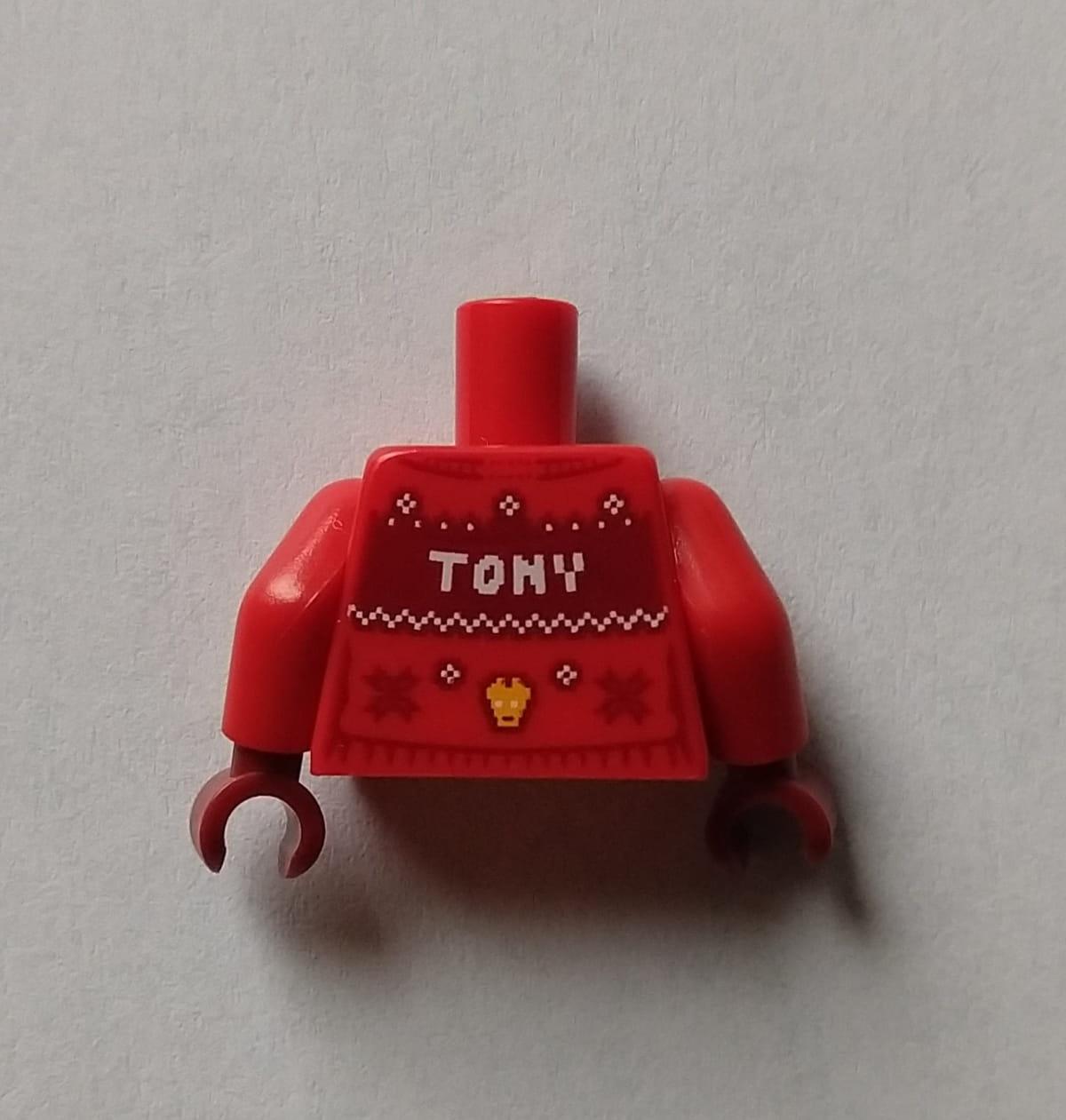 Giorno 1: Minifig di Iron Man/Tony Stark che indossa un maglione natalizio!