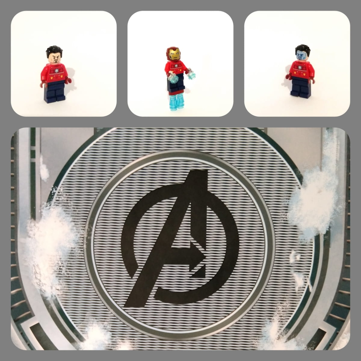 La testa può essere montata in tre diverse versioni, avendo la Minifig una doppia faccia. Si possono infatti ottenere queste diverse configurazioni: casco di Iron Man, faccia di Tony Stark con il display del casco, faccia di Tony Stark con capelli.