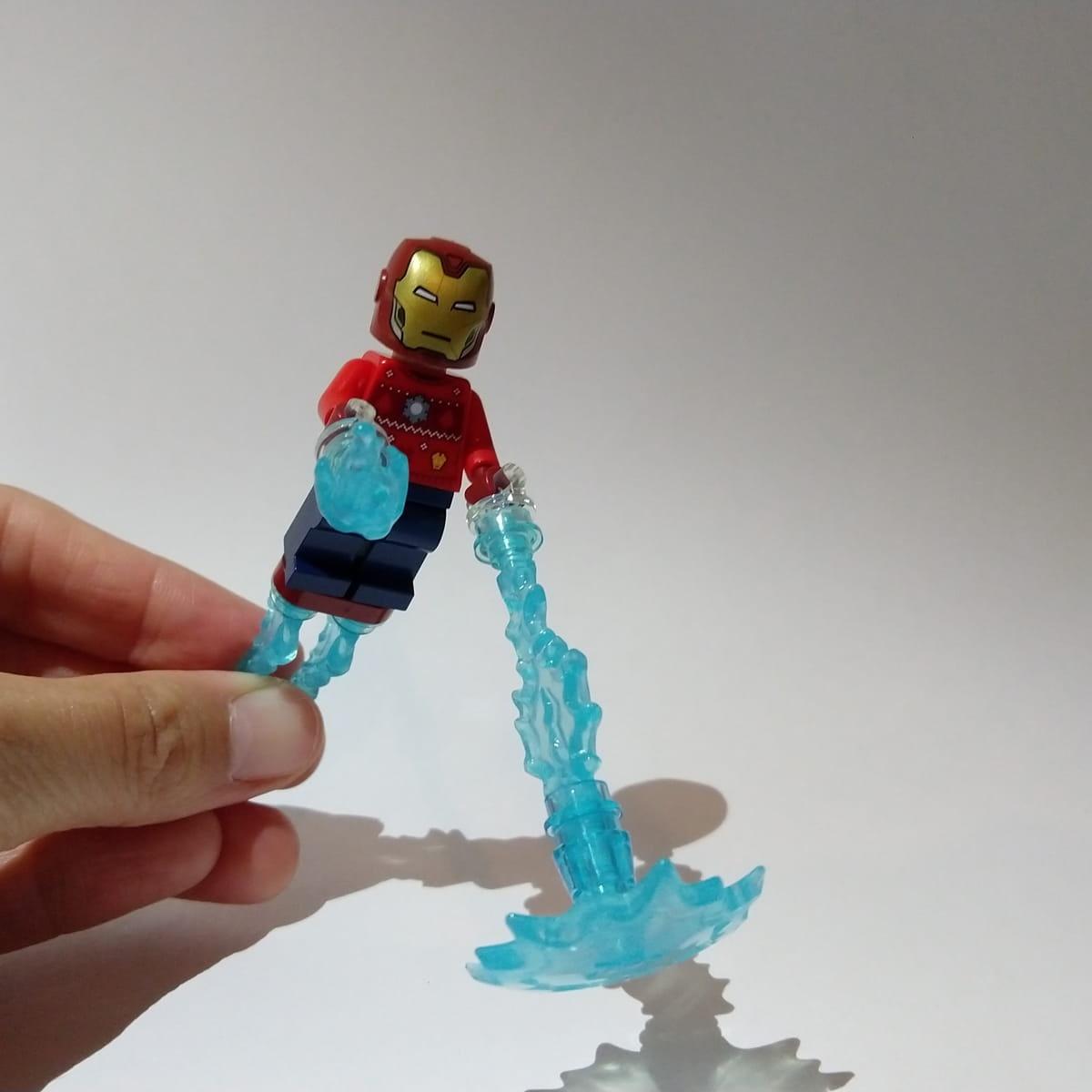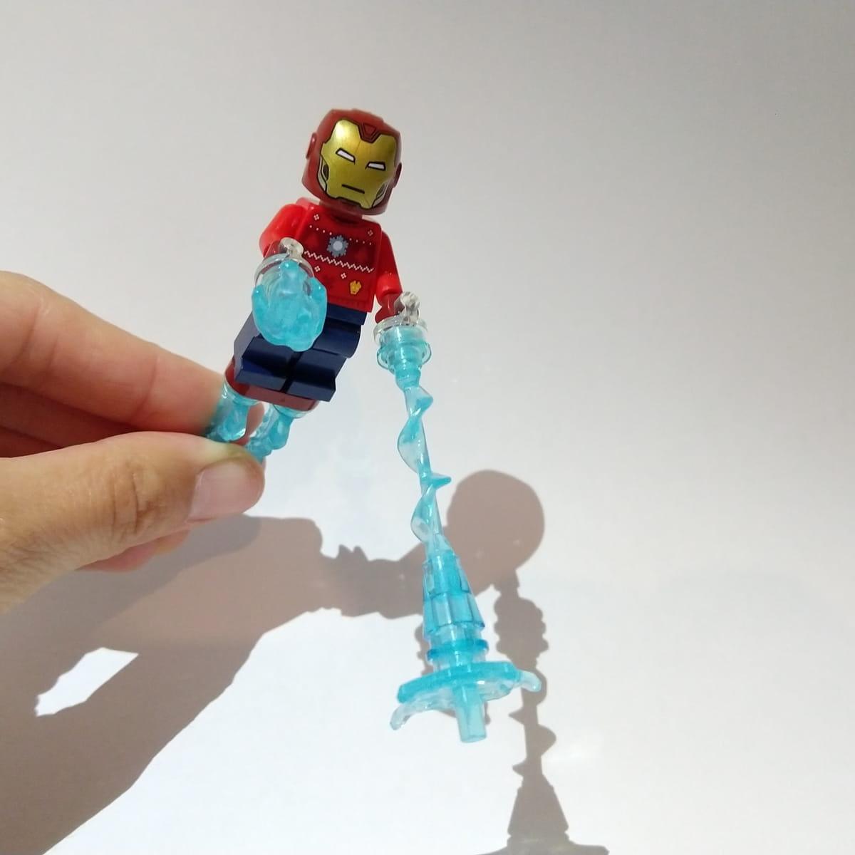 Da notare che i propulsori sotto i piedi impediscono la stabilità della Minifig, ma ne favoriscono la giocabilità, permettendo di far veramente volare Iron Man, particolare che sarà gradito soprattutto dai più piccini. Si possono comunque inventare soluzioni anche per esporre la Minifig, spazio alla fantasia!