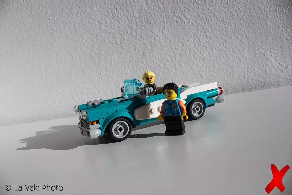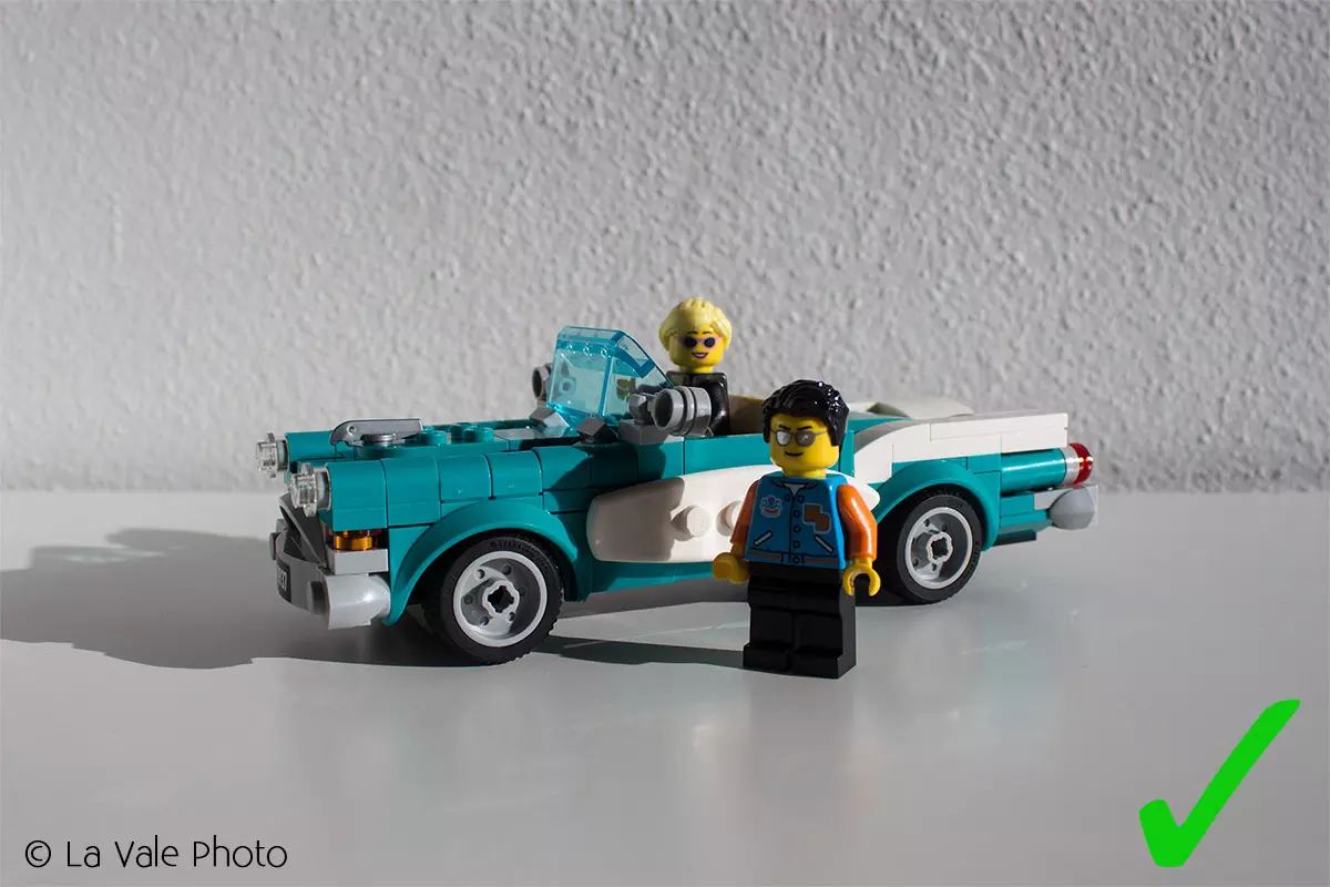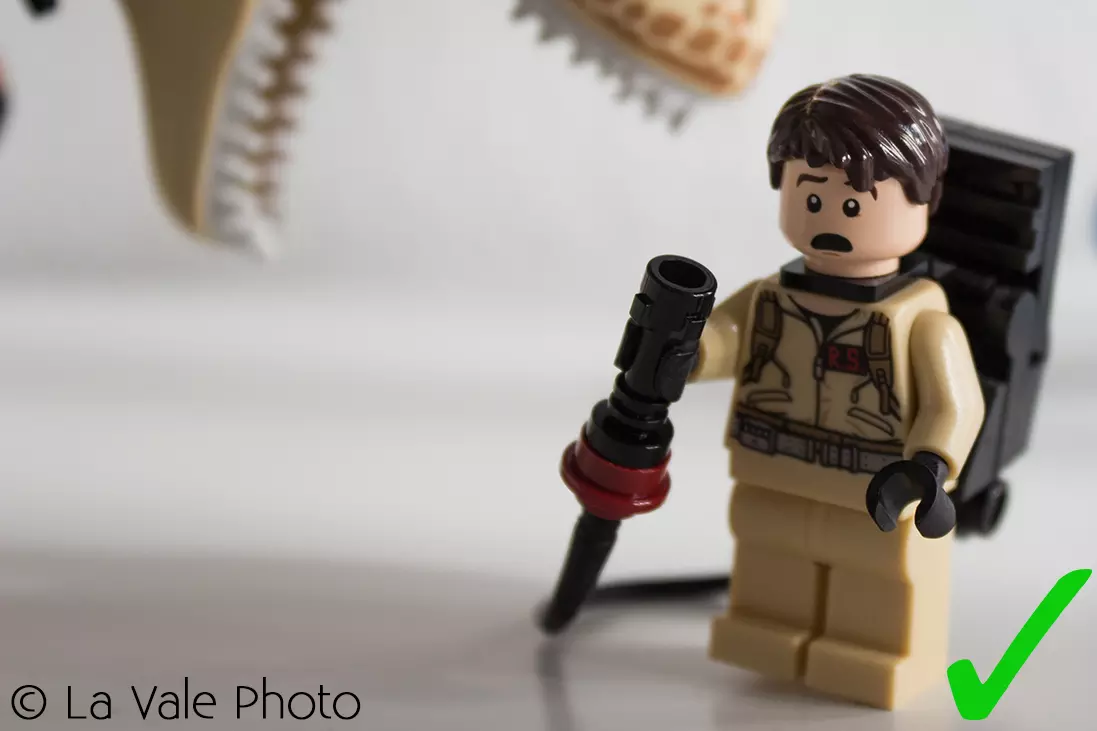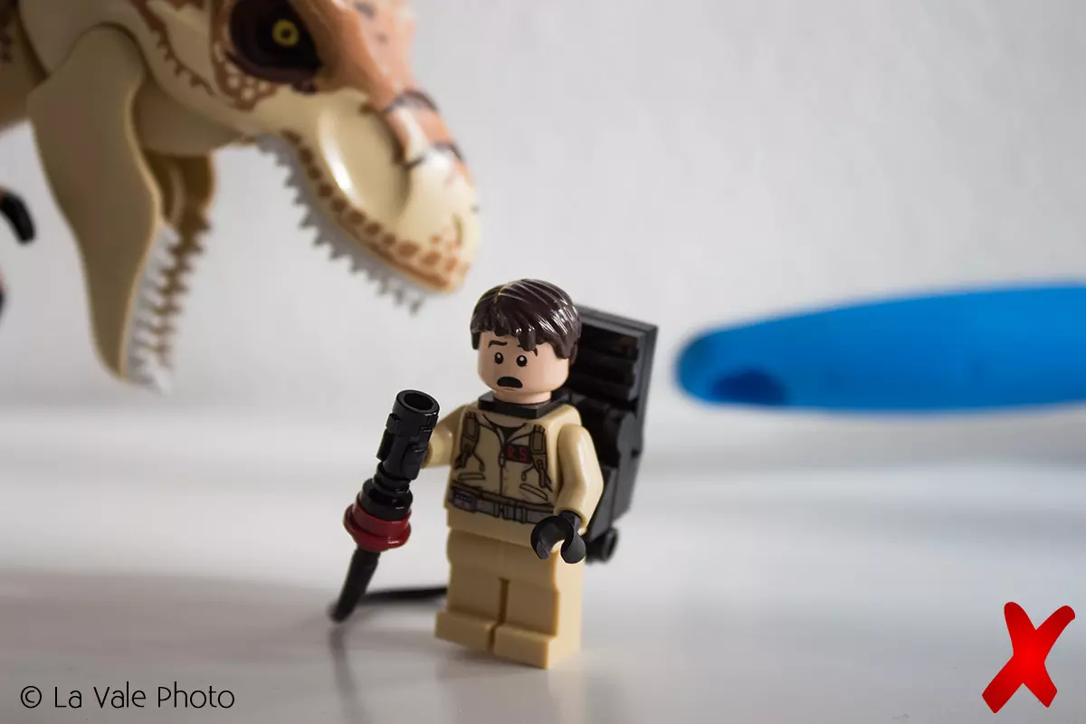 Tenete sempre a mente chi è il soggetto della foto (la Minifig, i mattoncini ecc.), perché sarà il soggetto reale della foto a dover essere ben visibile e non il contrario.