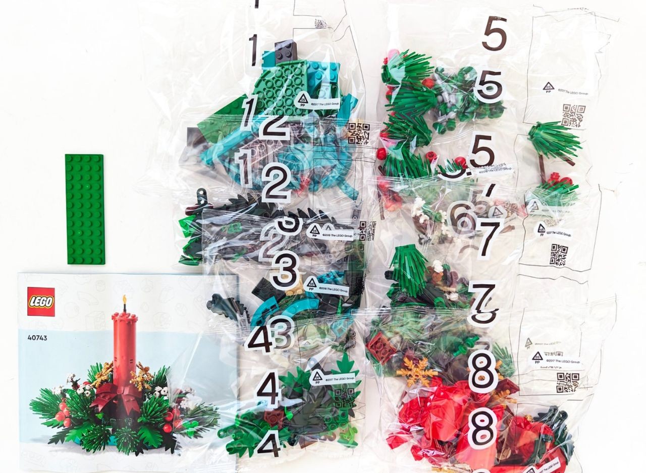 Come ho scritto all'inizio di questa recensione, questo è il terzo anno di seguito che compro almeno un set natalizio da costruire insieme ai miei figli ad inizio dicembre, per avviarci insieme all'attesa del Natale. Quest'anno la scelta è caduta sul set Baita Alpina (10325), set bellissimo, estremamente adatto ai bimbi per giocare ed ai grandi per costruire. Questo set della candela natalizia lo avevo adocchiato, ma all'inizio non avevo pensato di comprarlo. Poi sono successe due cose in rapida successione… in un momento di "ozio" mi sono guardato uno speed build del set ed ho notato la grande varietà di vegetazione presente nel set e subito dopo, in modo decisamente inatteso, mi sono accorto che il set era in promozione al 30% di sconto durante le recenti promozioni dell'insider weekend/black friday/cyber Monday. A quel punto ne ho approfittato e l'ho comprato a 28,00 euro al posto dei 40,00 di listino, quindi un bel risparmio con un ottimo rapporto prezzo/pezzi. Il set è composto da 433 pezzi e ci sono addirittura 24 "extra parts" tra bar di diversa tipologia, connettori, piccole piante e fiorellini (circa il 5/6 % dei pezzi totali).