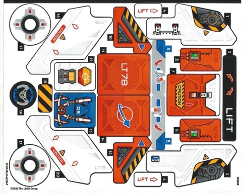 All'interno del box troviamo 5 buste numerate ed una non numerata con le parti speciali (ruote e cupolino della cabina di guida), il manuale di istruzioni (128 pagine per 130 step complessivi) ed un foglio di adesivi.