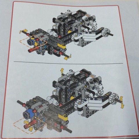 Con la busta 1 si inizia a realizzare la struttura principale inferiore del rover e la cabina di guida. In questa fase utilizzeremo un pezzo nuovo presente in tutti i set di questa "release" marziana (nel senso di Marzo… Ah Ah Ah), il pezzo codice 5405, nuovo elemento "knob cog" che ha il foro axle centrale ruotato di 45 gradi rispetto al suo gemello tradizionale. I due "knob cog" (vecchia e nuova tipologia), in abbinamento, daranno vita alla funzione principale del set che è quella di far sollevare ed abbassare il corpo centrale del rover, in modo da avere due possibili configurazioni (e tutte le altezze intermedie) per i movimenti del modello mentre si gioca.