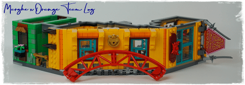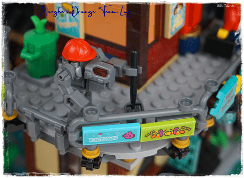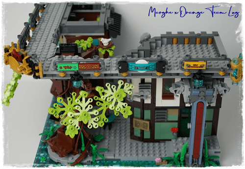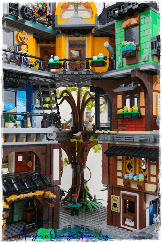 Al primo livello troviamo innanzitutto l'acqua, motivo predominante in questi set di ispirazione asiatica, e gli edifici tradizionali della città. Inizia da qui la costruzione dell'albero che domina tutta la costruzione e che farà anche da supporto al livello successivo.