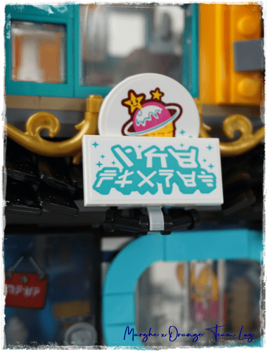 Il secondo livello è quello moderno, con la parte nuova della città con striscioni colorati che contornano la passerella su cui aprono tutti gli edifici della zona, striscioni che riportano richiami ai vari temi LEGO®.