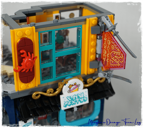Chiude questa parte del set LEGO® 71741 NINJAGO® CITY GARDENS la torre in Dark Turquoise posizionata sopra la stanza dei Ninja, che, quasi facendo una gara, con la sua antenna supera l'altezza del set LEGO® 70620 NINJAGO® CITY.