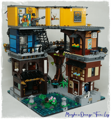 Tre set molto interessanti da unire, LEGO® 70620 NINJAGO® CITY, LEGO® 70657 NINJAGO® CITY DOCKS e LEGO® 71741 NINJAGO® CITY GARDENS, per tante combinazioni diverse anche se per me la soluzione migliore è metterli in ordine cronologico, mi piace molto questo saliscendi di livelli, questo flusso ondeggiante.