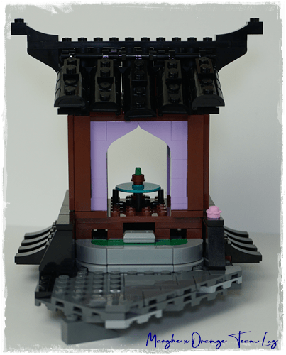 Ma non è finita qui, perchè c'è ancora una baseplate 16x32 Dark Bluish Gray su sui costruire un'isola giardino con il tempio di Zane (importante personaggio della serie 4 di Ninjago®), che si unirà al resto del set attraverso dei pin.