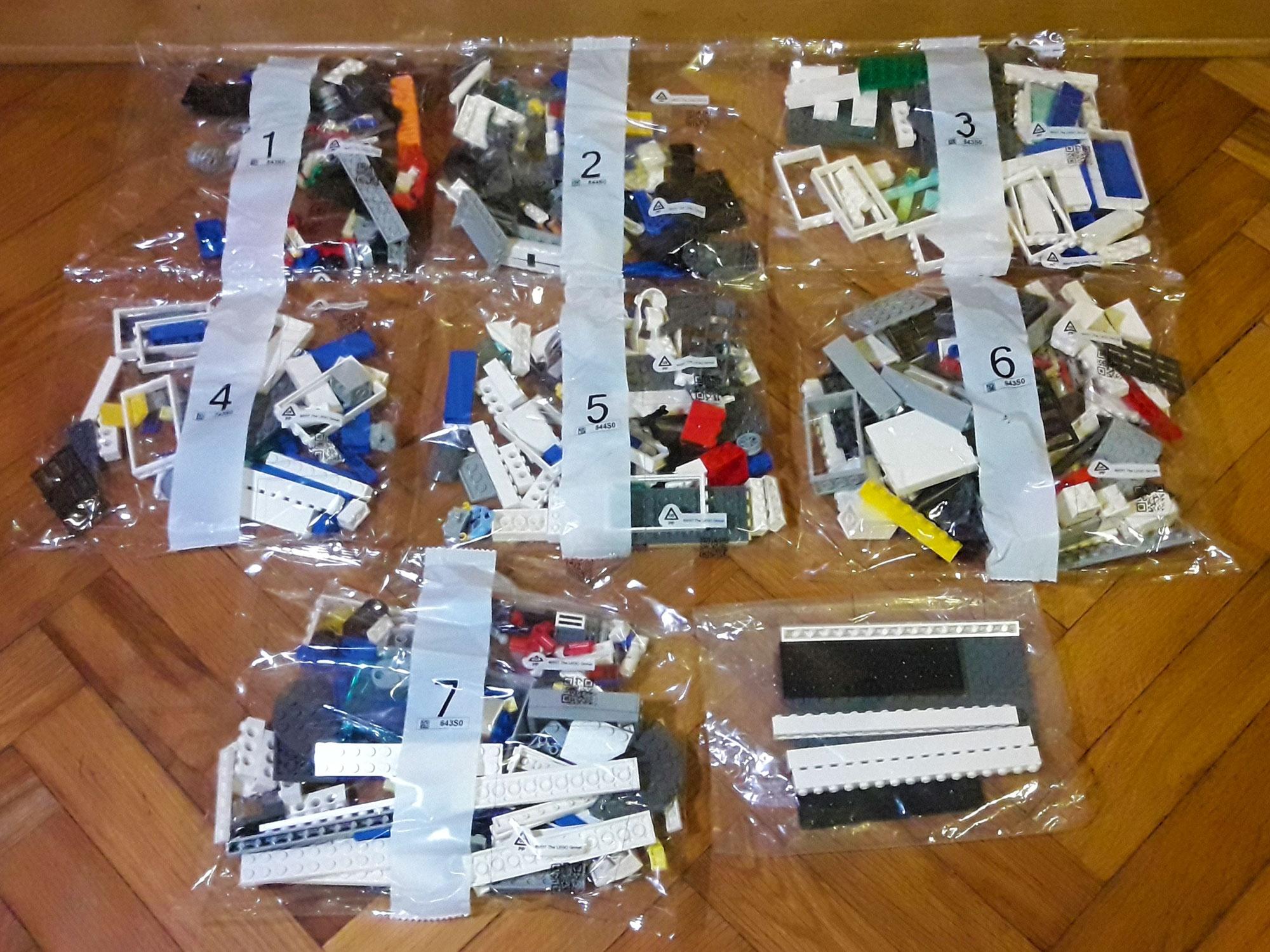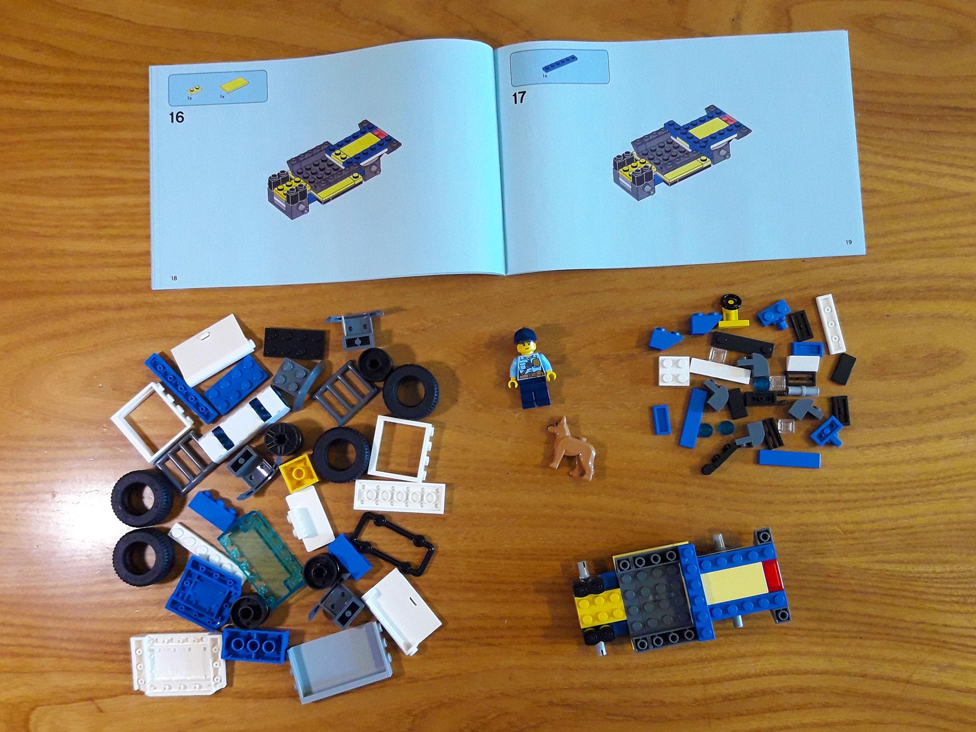Tra i pezzi ci sono inoltre uno speciale mattoncino luminoso con sirena, per l’auto della Polizia, e un mattoncino luminoso per il riflettore adibito a ispezionare l’area. Ci sono poi 6 libretti delle istruzioni, uno per ogni veicolo o parte dell’edificio, gli adesivi e il foglietto informativo sulle batterie incluse per i mattoncini luminosi.