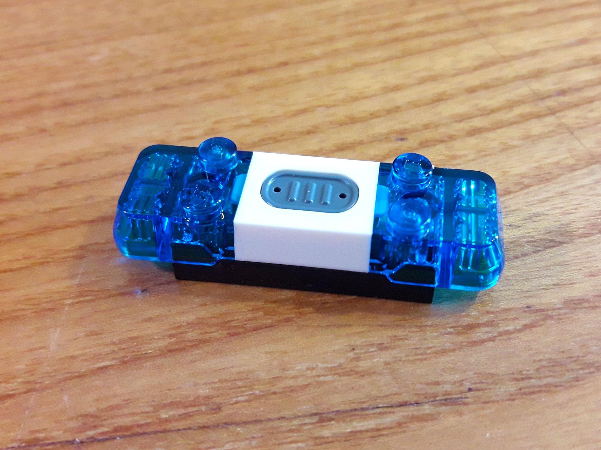 Si prosegue con l’auto della Polizia, decisamente migliore, una sorta di Land Rover avente sul retro l’abitacolo per il trasporto prigionieri, con tanto di inferriate. E’ su questo che va piazzato il mattoncino che emette luce blu e suona premendo un pulsantino sovrastante. All’interno del mattoncino si trova la batteria a bottone (inclusa) e lo si può aprire con un piccolo cacciavite a croce (non incluso).