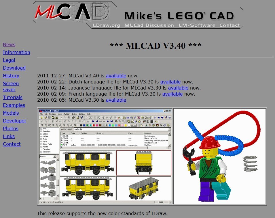 MLCad (Mike's Lego CAD) è un potente sistema CAD appositamente progettato per creare istruzioni per l'uso note come Lego, per i propri modelli e creazioni Lego. MLCad legge e scrive file compatibili con LDraw (un programma di James Jessiman) ma in un ampio ambiente basato su finestre. Il programma aiuta a creare istruzioni per la costruzione, che mostrano passo dopo passo come costruire un modello.MLCad (Mike's Lego CAD) è un potente sistema CAD appositamente progettato per creare istruzioni per l'uso note come Lego, per i propri modelli e creazioni Lego. MLCad legge e scrive file compatibili con LDraw (un programma di James Jessiman) ma in un ampio ambiente basato su finestre. Il programma aiuta a creare istruzioni per la costruzione, che mostrano passo dopo passo come costruire un modello. (TRATTO DAL SITO)