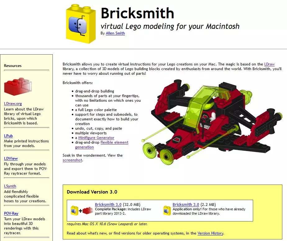 Bricksmith ti permette di creare istruzioni virtuali per le tue creazioni Lego sul tuo Mac. La magia si basa sulla libreria LDraw, una collezione di modelli 3D di mattoncini Lego creati da appassionati di tutto il mondo. Con Bricksmith, non dovrete mai preoccuparvi di essere a corto di parti! (tratto dal sito)