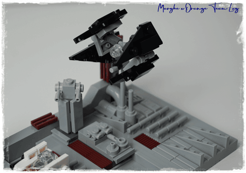 Molto realistiche le due piccole astronavi che sfiorano la superficie della stazione di battaglia, soprattutto il Tie Interceptor, composto da soli 20 pezzi, ma che rende bene il modello soprattutto grazie alle nuove wedge plate 2x4 appuntite.