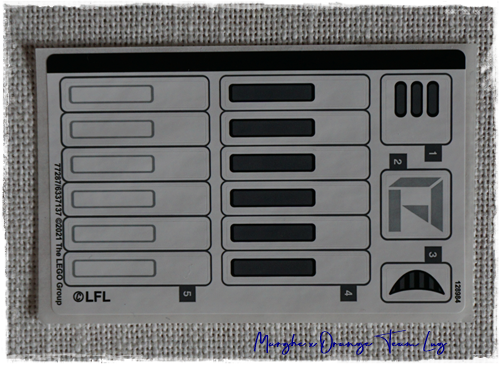 Il set viene fornito con una serie di adesivi, visto che il modello è chiaramente rivolto agli adulti e non è nemmeno particolarmente economico, resto dell'idea che qualche brick stampato in più non ci starebbe male, renderebbero il set decisamente più accattivante.