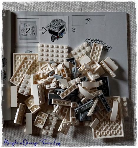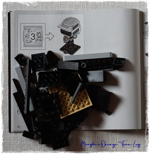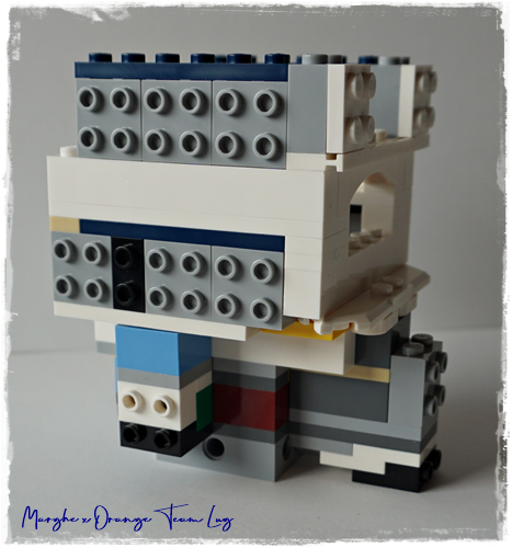 Rispetto agli altri caschi, qui iniziamo costruendo il nucleo centrale, lasciando piedistallo ed accessori per ultimi. Un buon diversivo rispetto allo stile di costruzione standard, anche se la costruzione rimane comunque stile BrickHeadz.